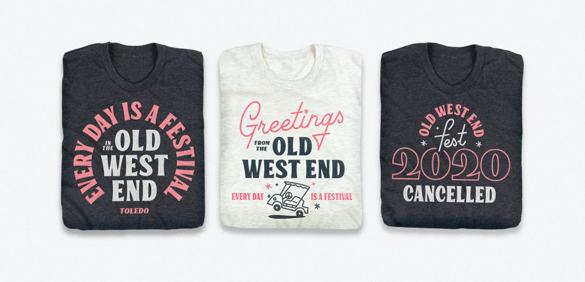 Like most events in 2020, Fest was understandably cancelled. I had the opportunity to create apparel designs to commemorate the first cancellation our neighborhood had seen, and raise funds for the Old West End Association, who would normally count on fest as the primary source of income for the year.